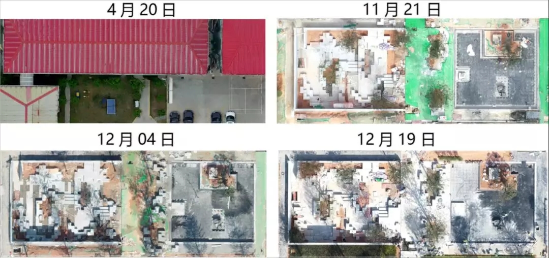 截至目前,測(cè)量組已經(jīng)開展了7次影像拍攝,對(duì)項(xiàng)目進(jìn)行動(dòng)態(tài)跟蹤,下圖是禮園動(dòng)土前后的影像對(duì)比。